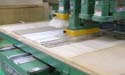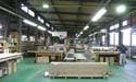 イイダアックスの工場は、縦横3メートル、分速100メートルまで可能なドイツ製ランニングソーをはじめ、遠赤外線乾燥機、大型高周波接着機、NC機器の最新鋭ライン設備等を完備しています。