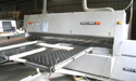 当社オリジナルマシンで、左右2箇所に鋸刃の逆回転カット機が装備され、基材移動距離を左右に振る事で最小化しています。
