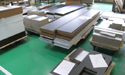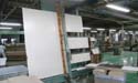 扉などの小口に厚物樹脂エッジ貼り加工をします。出口には真空積み替え前受け装置が設置されオートリターンできます。