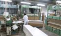 写真は投入口。環境対応型の接着剤PURを使用して基材表面に化粧シートのラミネートを行います。